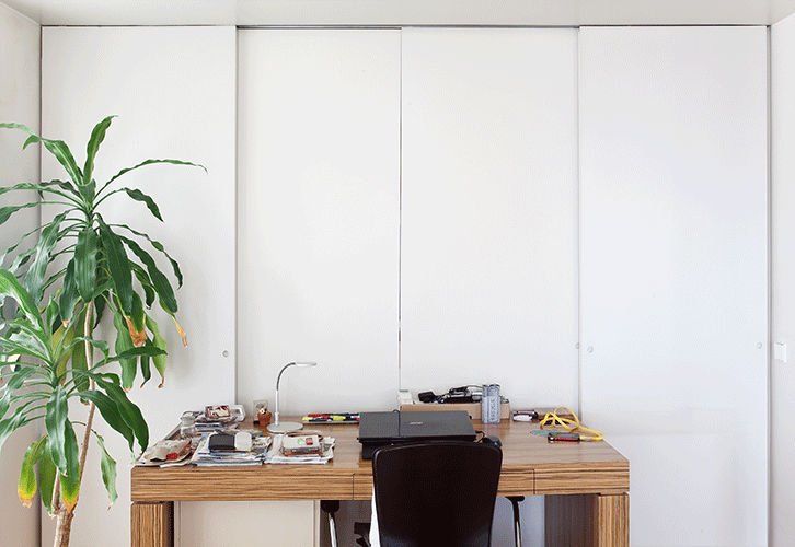 El dormitorio puede independizarse mediante cuatro puertas correderas