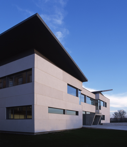 La cubierta se reviste de zinc, continuo en los planos inclinados y en lamas en el resto, facilitando la ventilación de las máquinas de climatización, alojadas en su interior.