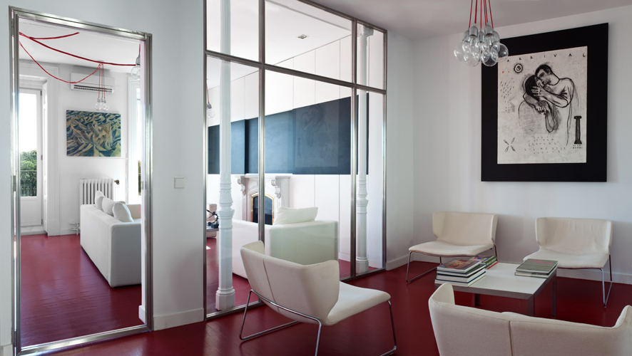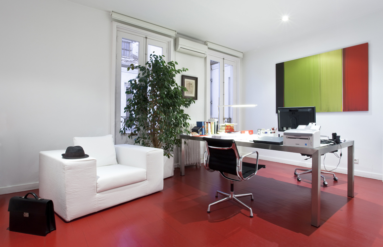 - Mantener el suelo de madera existente, para no perturbar al vecino, pintándolo con el color corporativo del "estudio" de abogados.