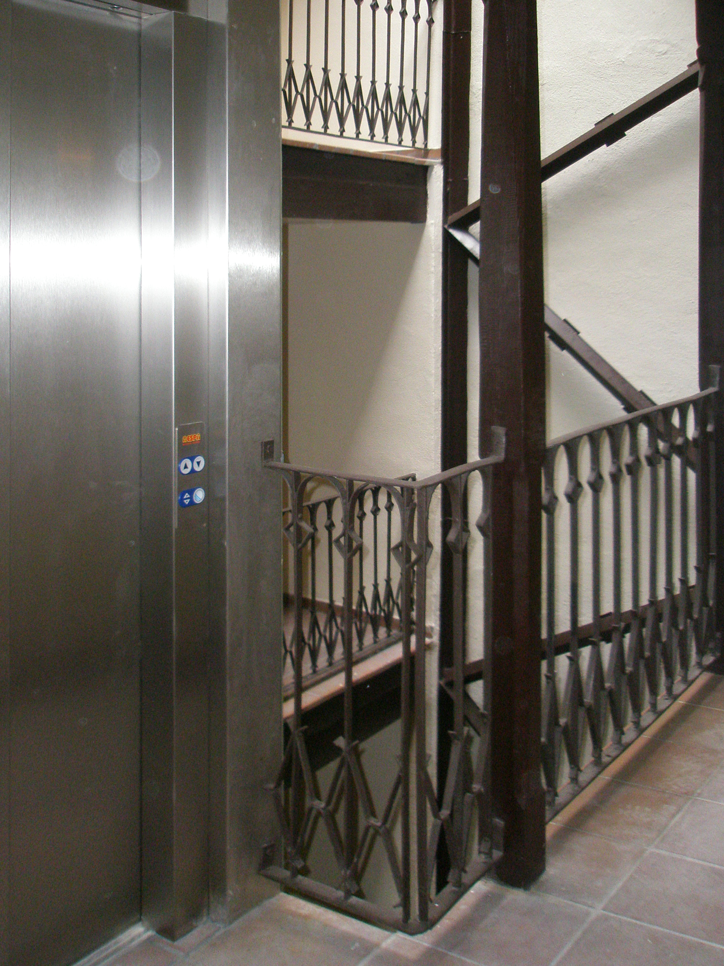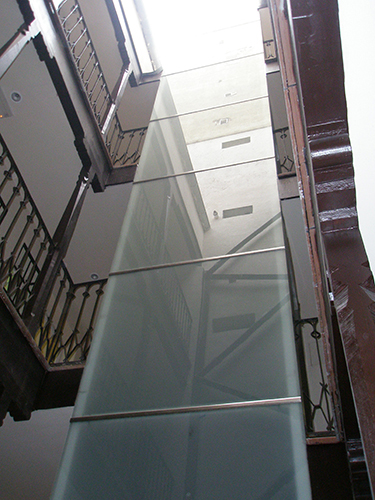 Se construyó un ascensor acristalado en un lateral del patio de la corrala.