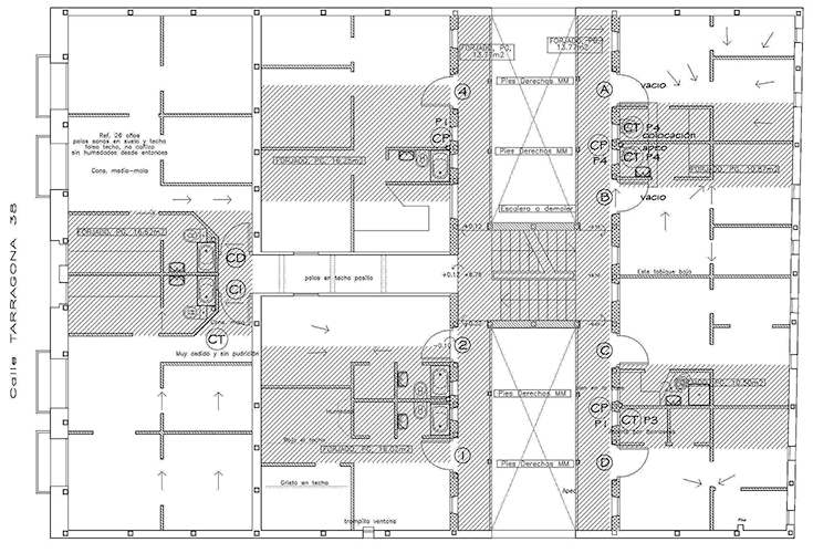 El inmueble comprendía 8 viviendas exteriores y 32 viviendas interiores en corrala.