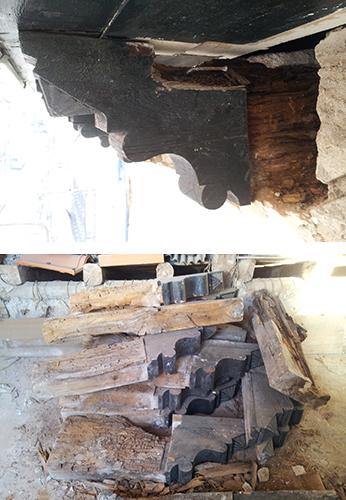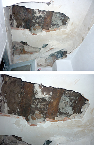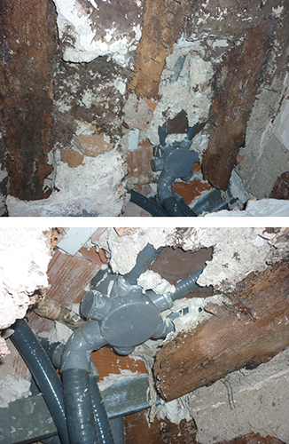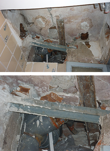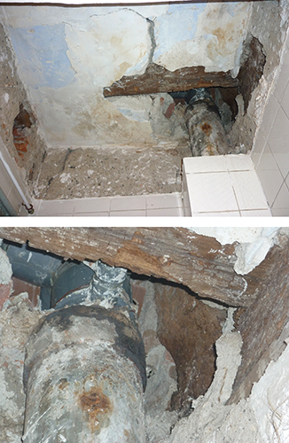 Toda la estructura interior de gran parte de las zonas húmedas de las viviendas y locales (baños y cocinas) presentaba un avanzado estado de pudrición. >