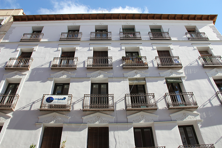 < En fachada los balcones se encontraban muy oxidados, la cornisa podrida y el estuco necesitaba una completa renovación.