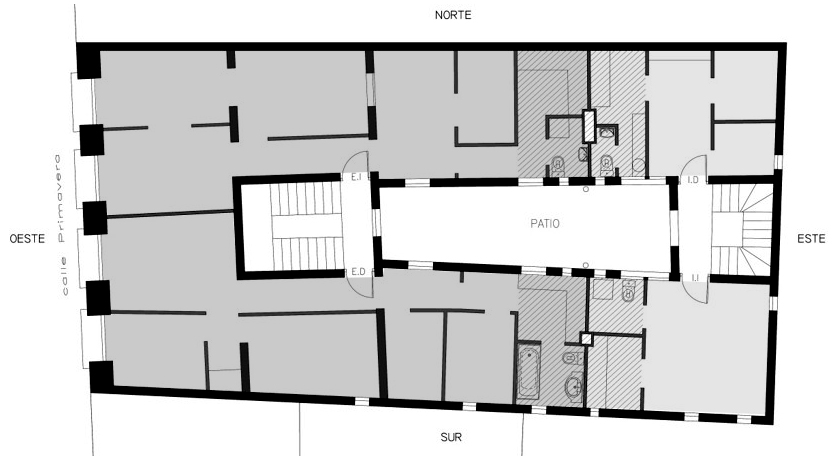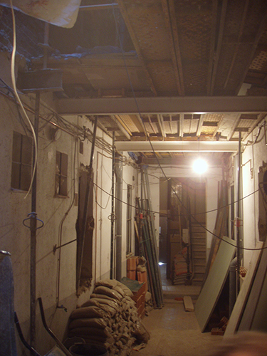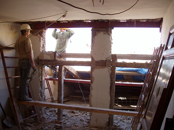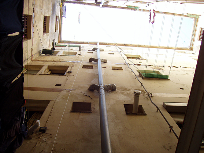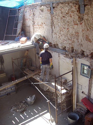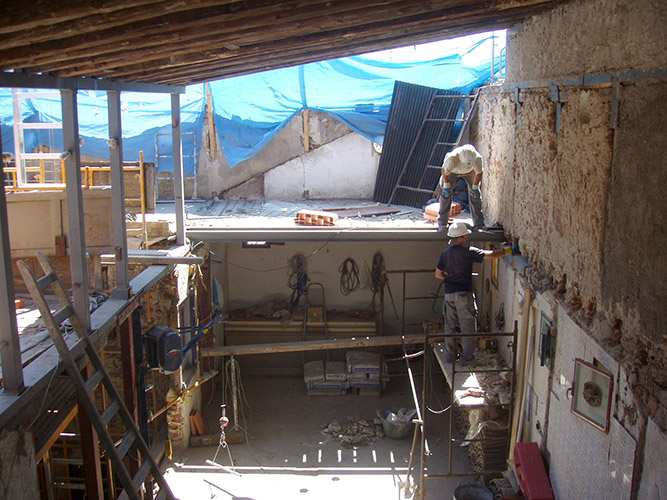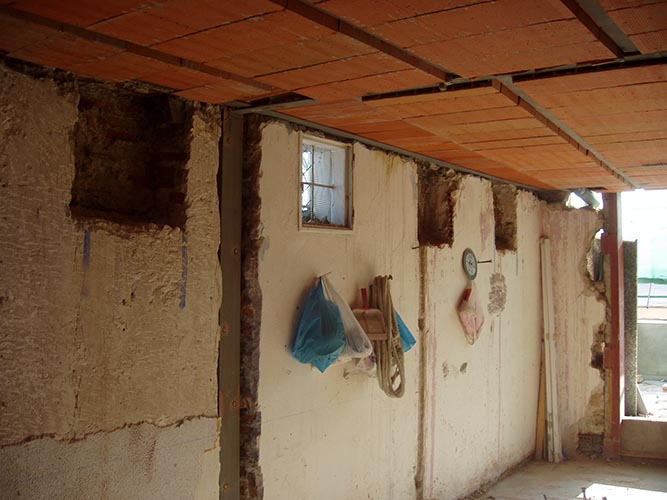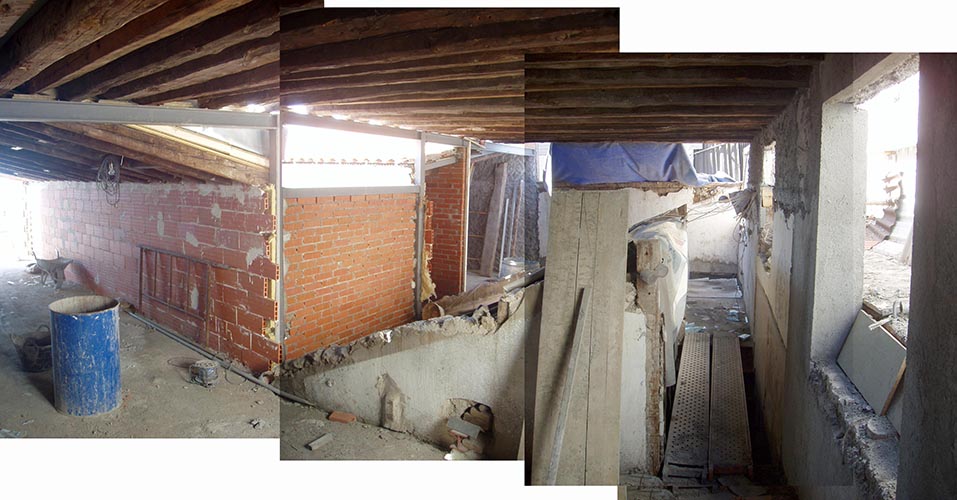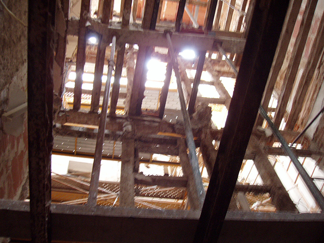 Toda la estructura en mal estado, que corresponde con los baños y cocinas clausuradas, se derribó en vertical y se rehizo desde los cimientos. Esta organización permitió acortar mucho la duración de la obra.