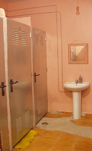 En varios pisos que estaban desocupados se construyeron baños y duchas comunes. En ellos, los habitantes de todas las viviendas disponían de su inodoro y su ducha, en cabina independiente, con llave propia.