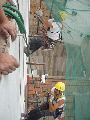 Se descolgaron unos escaladores para sujetar un andamio volado.