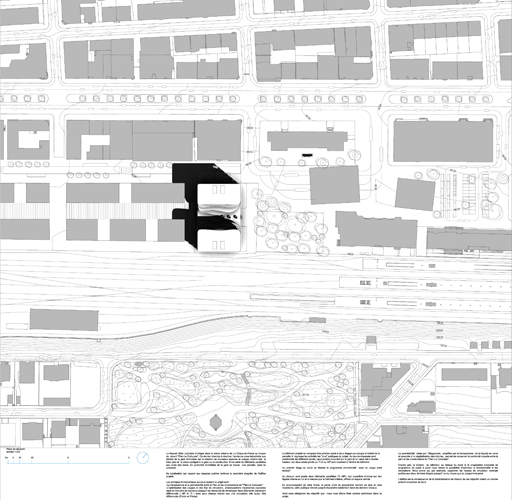 El Nouvel Hôtel Judiciaire se inserta en la trama urbana de La Chaux-de-Fonds a través del reciente "Plan Le Corbusier", el cual busca impulsar la antigua zona industrial anexa a la estación mediante la creación de nuevos espacios y usos urbanos que ayuden a reactivar el área, entre los cuales está la remodelación del parque y la plaza contigua a la estación y la construcción de una serie de edificios paralelos a las vías del tren, encabezado por el que ocupa la parcela objeto del concurso.